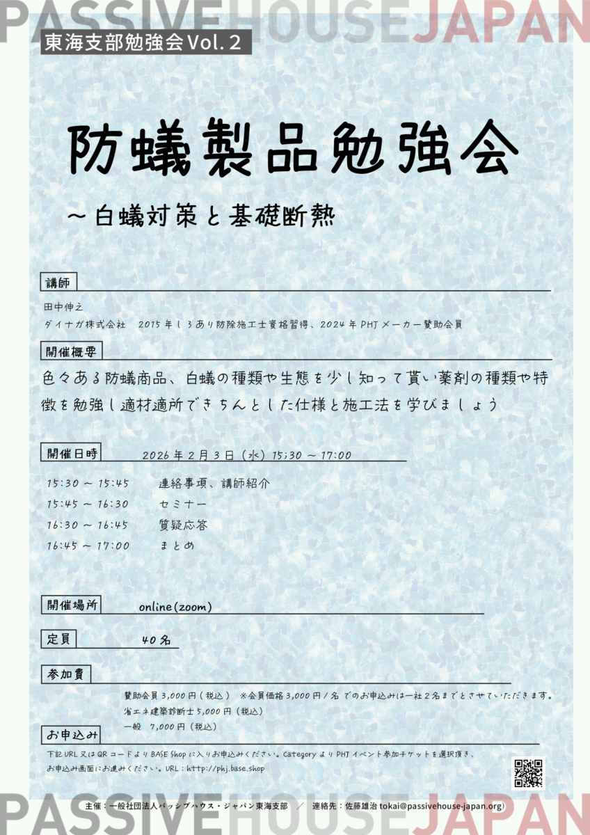 | 料金 | ▶賛助会員 3,000円(税込)/名 ※賛助会員価格は1社2名まで ▶省エネ建築診断士 5,000円(税込)/名 ※複数お申込の場合はお名前を明記ください。 ▶一般 7,000円(税込)/名 |